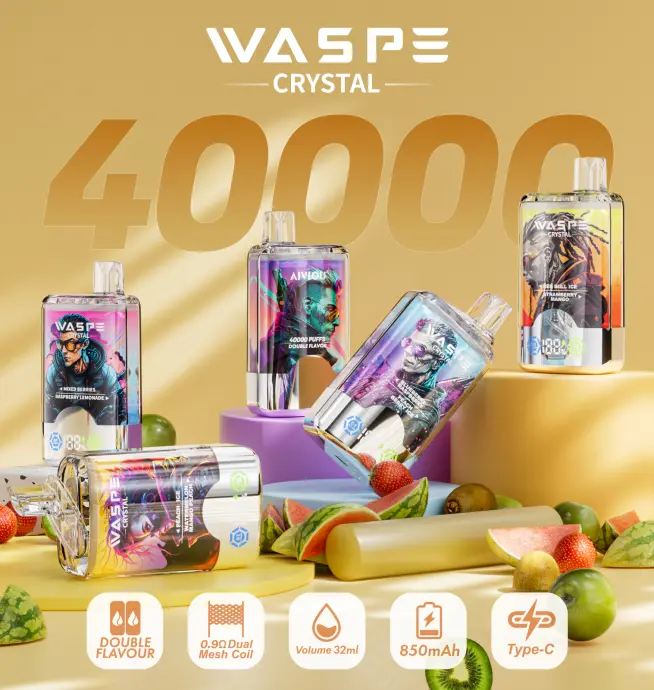 Experimente el futuro del vapeo con el WASPE Crystal 40000 40K Puffs - Vape desechable con pantalla LCD y doble sabor – ¡Donde la tecnología se combina con un sabor superior!